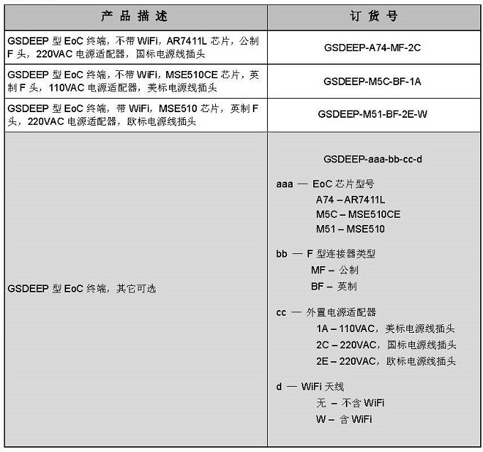 GSDEEP 配合同軸電纜以太網(wǎng)頭端設(shè)備,旨在通過(guò)有線電視用戶家中已有的同軸電 纜網(wǎng)絡(luò)在接收有線電視信號(hào)的同時(shí)可接入以太網(wǎng)數(shù)據(jù)信號(hào)。